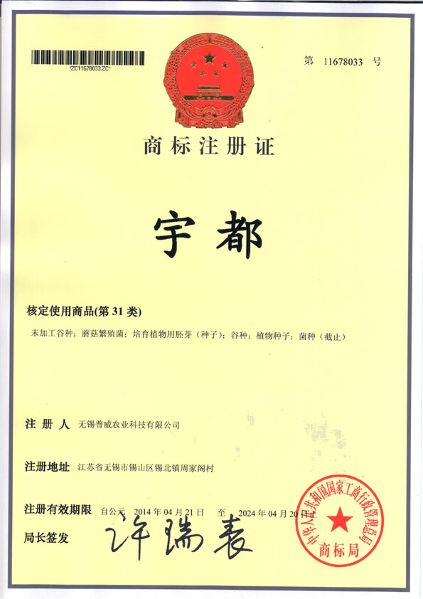 无锡普威农业科技有限公司商标证书领取通知 | ||