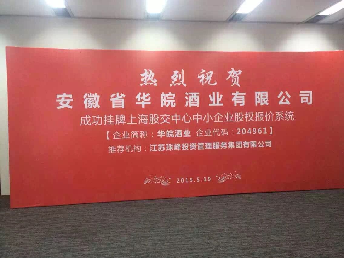 预祝贺安徽省华皖酒业有限公司(204961)2015年5月19日9点09分在上海股交中心成功挂牌上市!六安市又多了一家插上资本翅膀的优秀民营企业,原始股权即将开放!