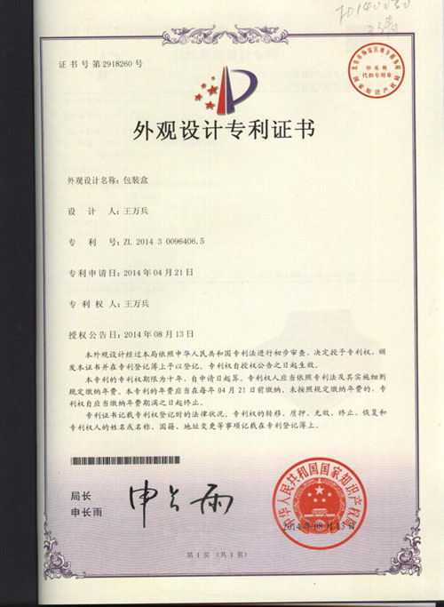 王万兵外观专利证书领取通知 无锡奇想创造知识产权服务有限公司 地址:江苏省无锡市滨湖区星光广场173幢2608 证书领取联系电话18951578487 | ||