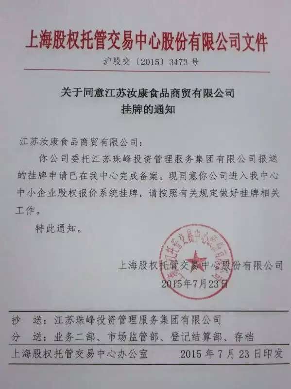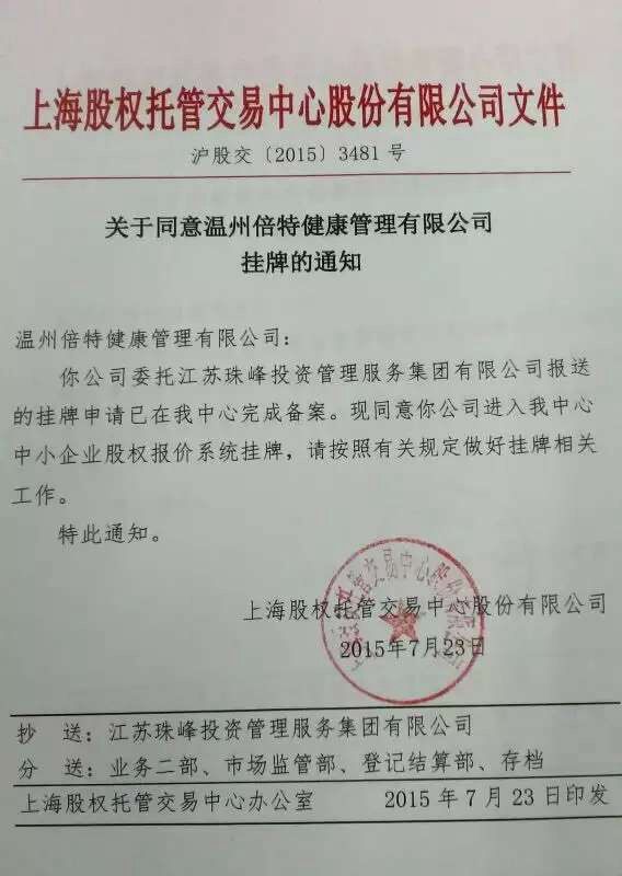 热烈祝贺温州倍特健康管理有限公司、江苏汝康食品商贸有限公司通过上海股交中心严格审查,完成备案工作,即将挂牌上股交